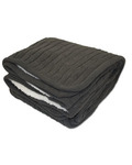 Front Side: 100% polyester chenille; Inside: 100% polyester; Packaging: Vinyl zippered bag.; Beautiful knit pattern on one side and soft, faux lambswool lining on the other. ; Warm and cozy like your favorite cable knit sweater; 50" x 60"; Machine washable.;